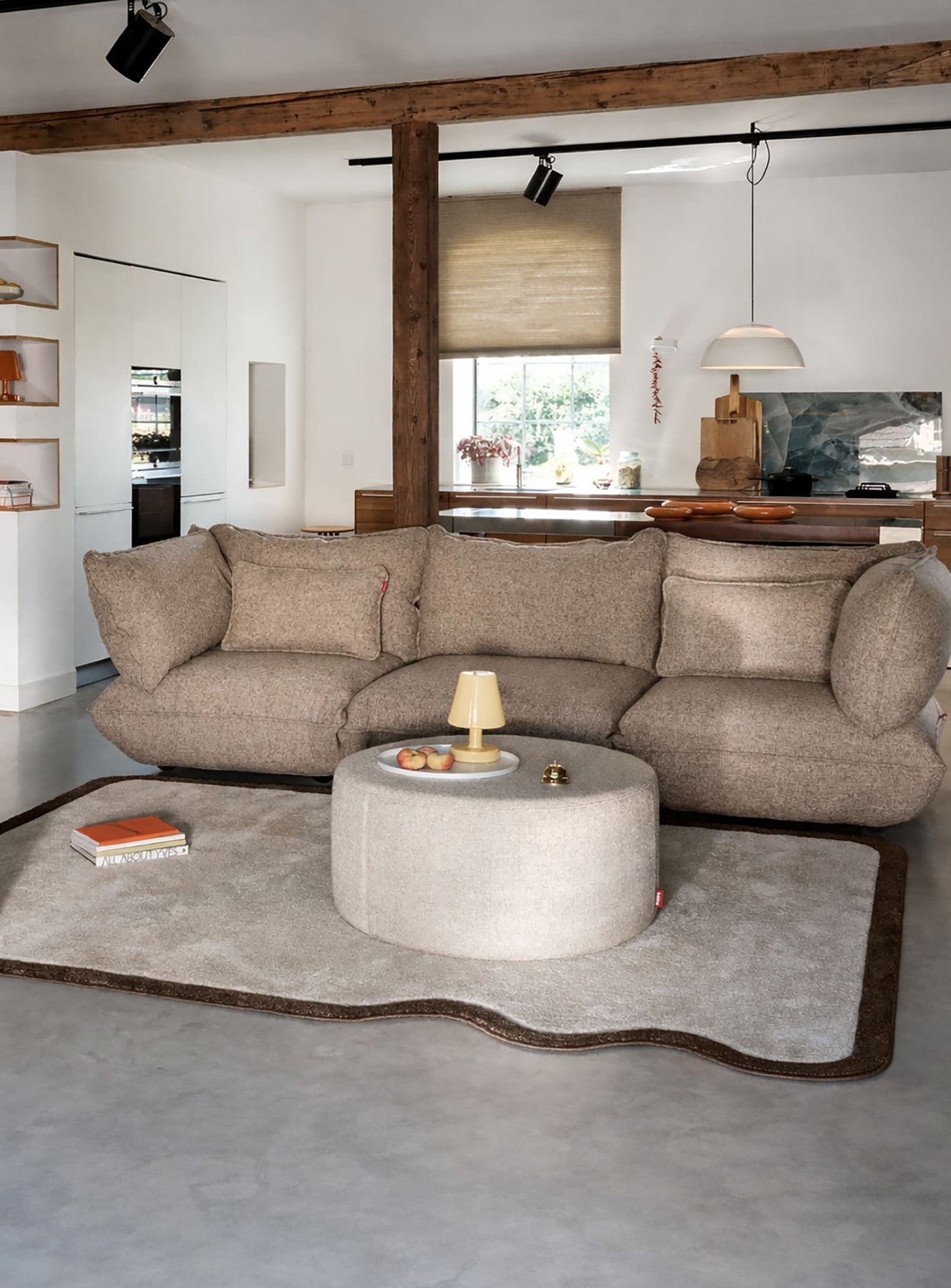 La base couleur crème, soulignée par une bordure brune contrastante, apporte chaleur et équilibre à votre décor. Facile à agencer, ce tapis s’intègre aussi bien dans un intérieur minimaliste que plus éclectique. Une discrète étiquette rouge Fatboy complète le design et peut être repliée vers l’intérieur pour un look plus épuré.