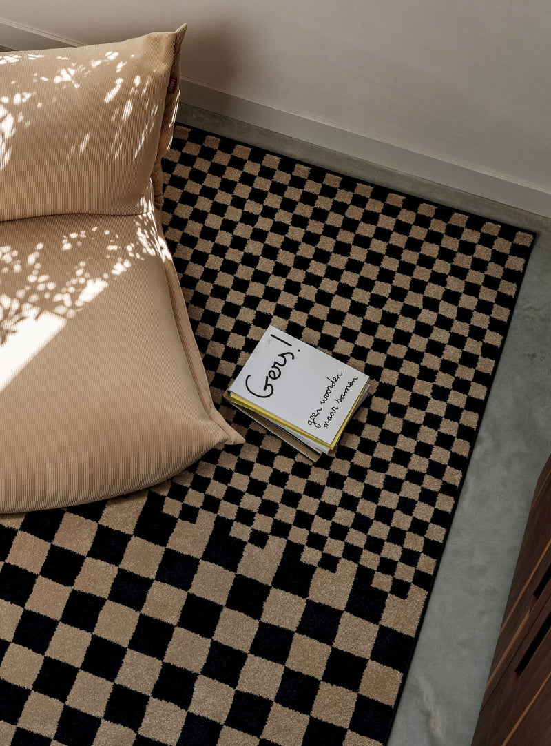 Le Carpet Petit Square Affair marie rythme graphique et confort au quotidien dans un tapis design raffiné. Son motif en blocs bleu marine profond et beige apporte une touche visuelle forte, sans alourdir l’espace. D’un côté, des blocs plus petits, de l’autre, des blocs plus larges : ce contraste subtil donne toute sa personnalité au tapis.