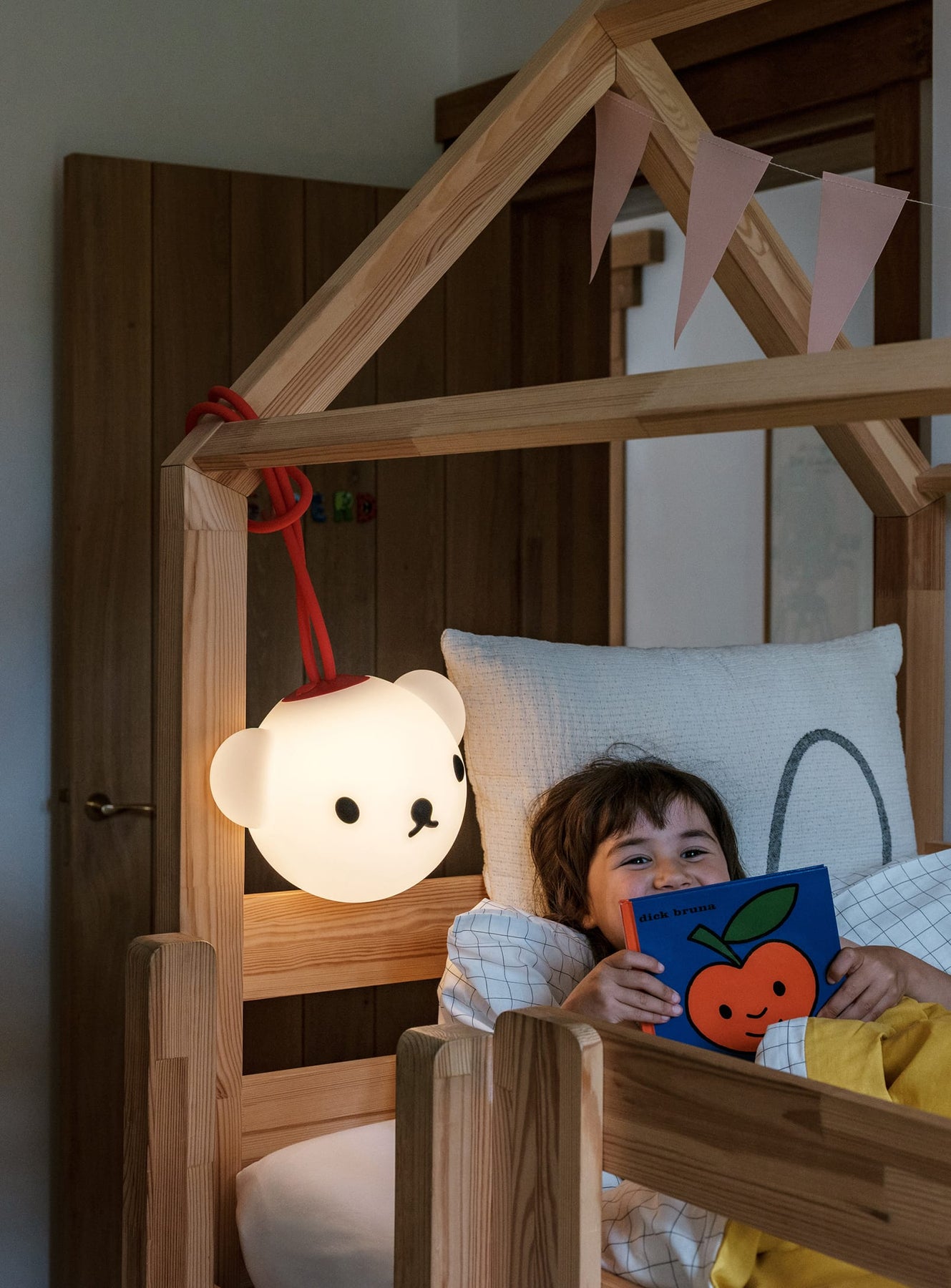 Les lampes Bolleke x Miffy et Bolleke x Boris réunissent la lampe portative emblématique de Fatboy et le charme ludique des personnages adorés de Dick Bruna. Arborant le doux visage de Miffy ou les oreilles rondes de Boris, ces lampes suspendues rechargeables créent une lueur chaleureuse et réconfortante, où que vous en ayez besoin. Avec trois niveaux d’intensité et jusqu’à 24 heures d’éclairage, elles sont pratiques, portatives et irrésistiblement amusantes. Parfaites pour les chambres d’enfants, les aires de jeux ou simplement pour ajouter une touche joyeuse à votre espace de vie, les lampes Bolleke x Miffy et Boris illuminent la vie avec caractère et charme.
